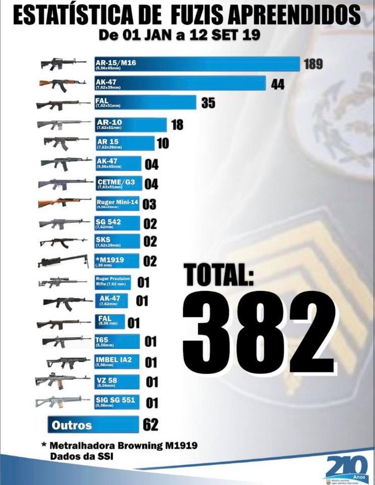 A PNERJ atingiu o RECORDE de apreensões de fuzis da última década. Somente neste ano, nossos policiais militares retiraram das mãos de criminosos 382 fuzis.