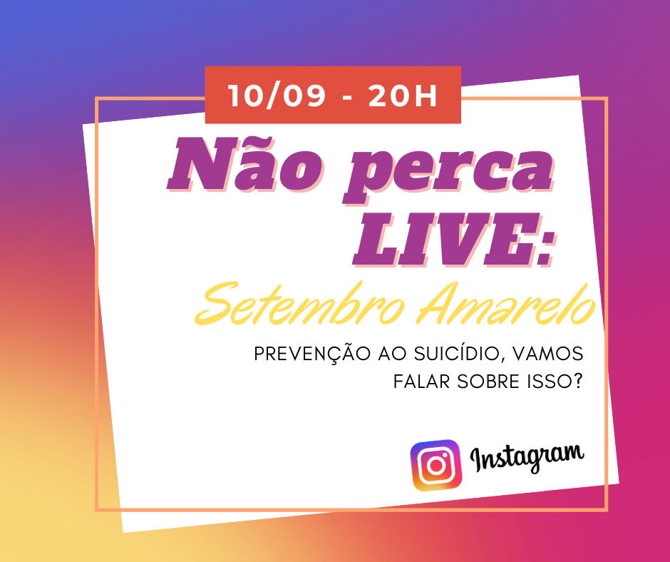 Dia 10 de setembro de 2020, "Dia Mundial do Combate ao Suicídio", realizamos uma live, via Instagram, com a psicóloga Kelly Faria Simões, que é especialista no assunto.