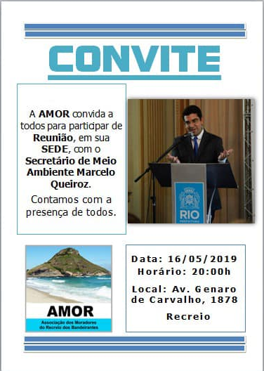 Convidamos os moradores e associados para a nossa reunião com o Secretário de Meio Ambiente Marcelo Queiroz.