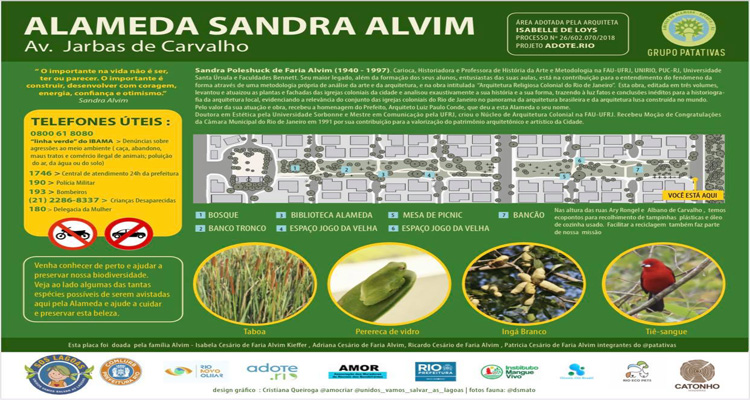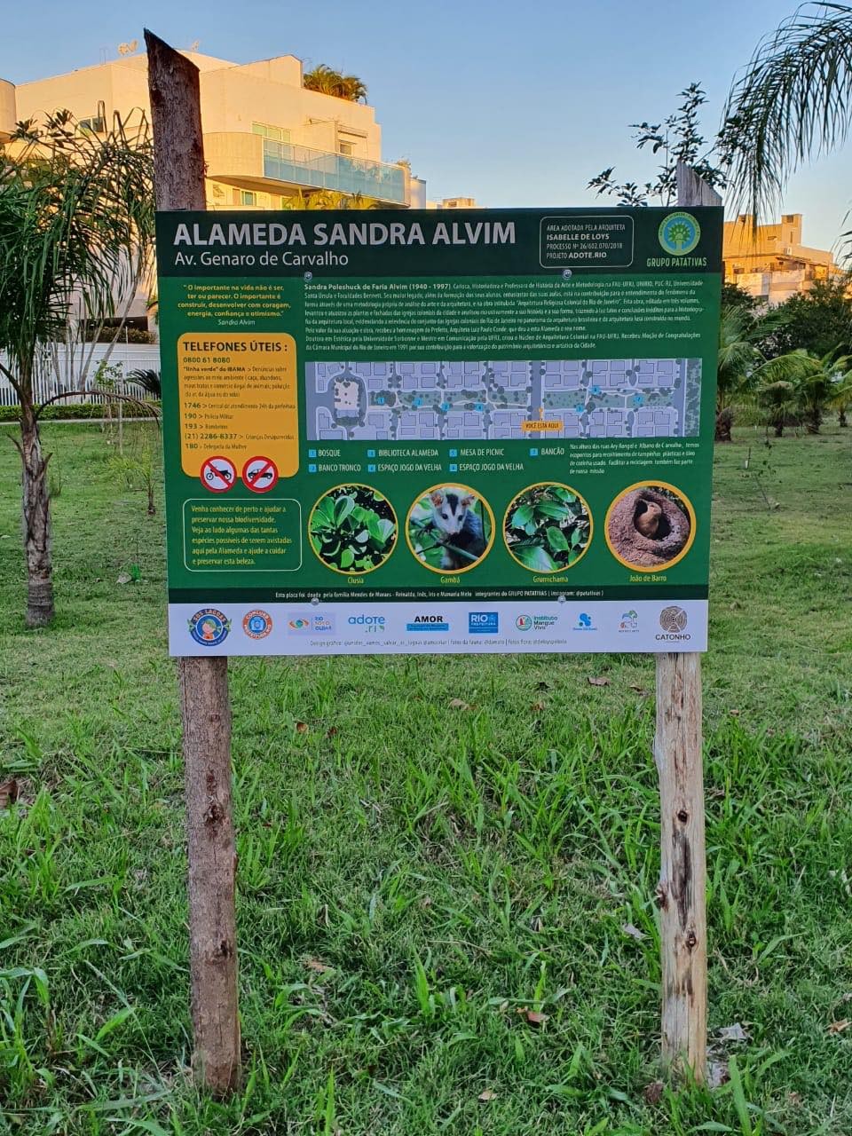Esta semana foram instaladas as placas oficiais da Alameda Sandra Alvim, onde é possível conhecer a vida de Sandra Alvim e sobre as espécies desta região.